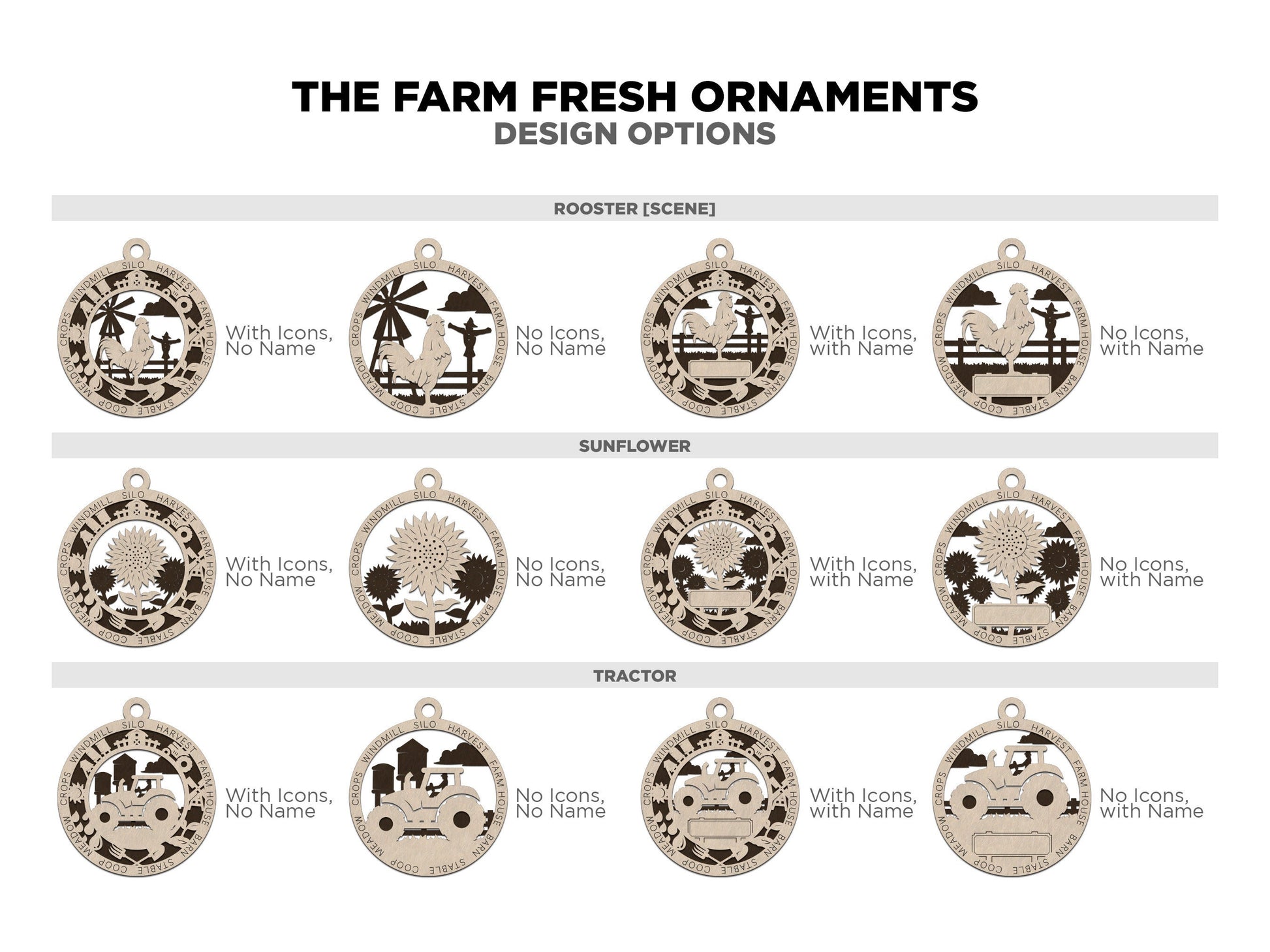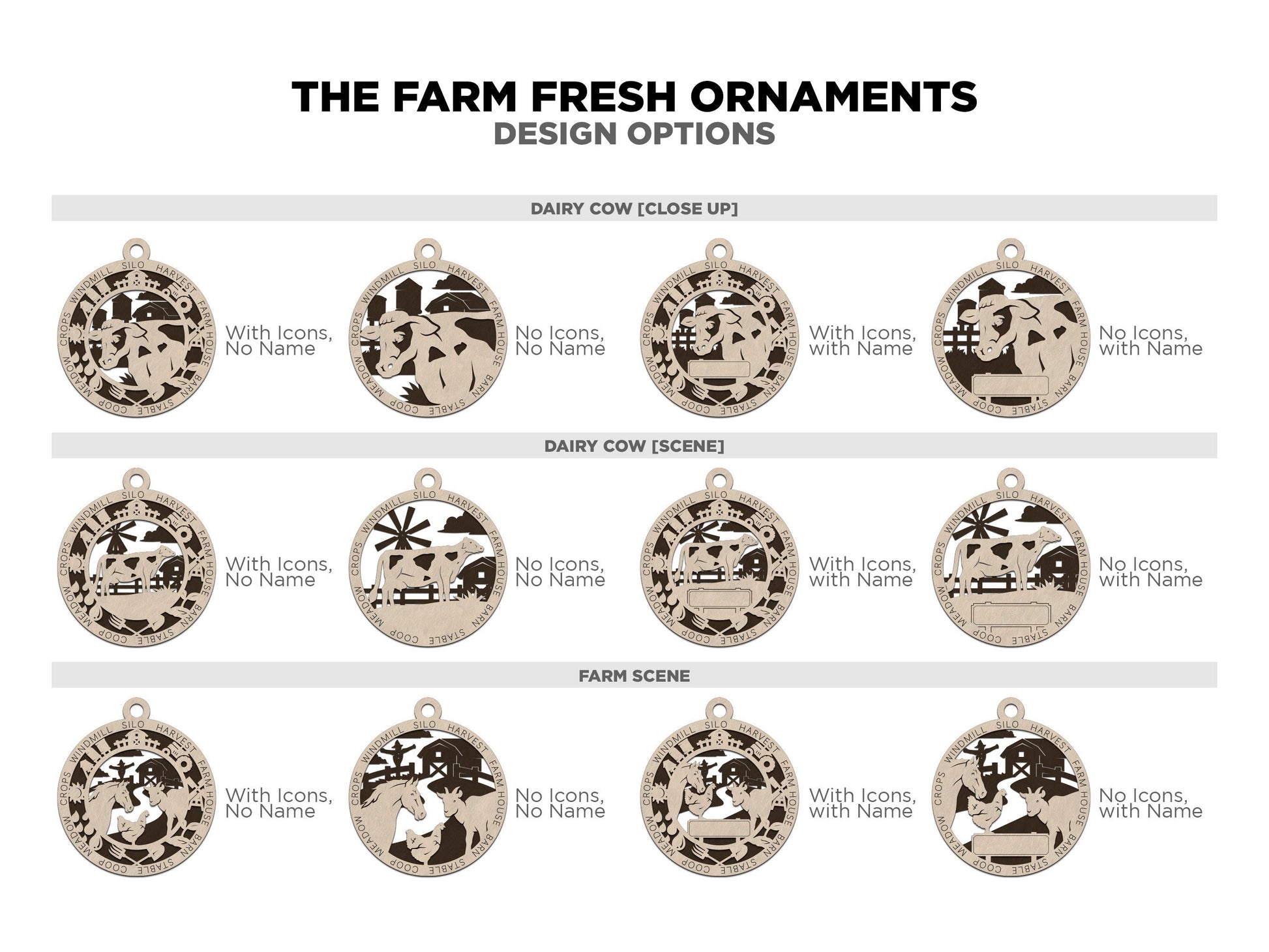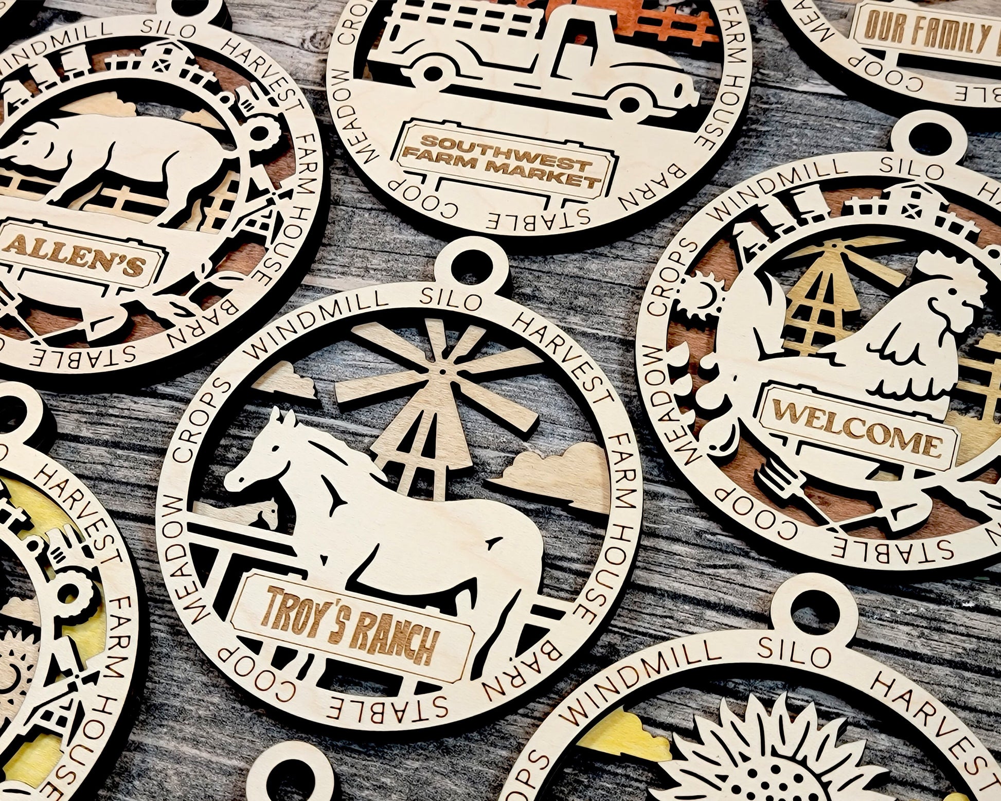 Farm Personalized Ornaments | Handcrafted | Wooden | Laser-Cut | Gift
